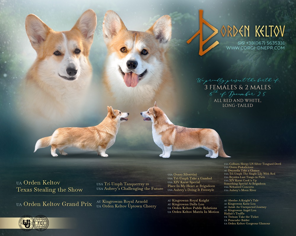 Рада вітати тебе на сайті приватного розплідника собак породи вельш коргі пемброк Орден Кельтів.Мене зовуть Тетяна Гаврюк, я-власниця та заводчик розплідника Орден Кельтів, а також суддя міжнародної категорії в системі UKU-FCI.Ми знаходимся в мальовничому місці неподалік від Дніпра, що називається Орлівщина.Я почала займатися коргі в 2006 році, коли на світ з'явився мій перший пемброк, Grand General Gaucho,якого в Україну ми привезли з Польщі. Двома роками потому у 2008 році був зареєстрований розплідник під назвою Орден Кельтів. Назва розплідника говорить сама за себе: кельтські традиціі в Украіні та міцне товариство.В 2009 році ми отримали перший приплод. Наша програма розведення має ціллю примноження найкращих якостей породи з накопиченням в родоводі славетних представників пемброків, за якими стоять імена відомих у світі заводчиків, отримання здорового поголів'я з типовим яскравим темпераментом.Для реалізаціі такого підходу до розведення я постійно та самостійно імпортую собак, додаючи до свого поголів'я яскравих представників відомих розплідників: Twinan (Англія), Pemcader(Англія), Raintrees (Японія), Kingrowan (Австралія), Aubrey (США).Сьогодні вже можна стверджувати, що у мене сформувався свій особистий тип пемброка, бо я працюю в накопичення кровей,ми вже отримали 5-6 поколінь, тобто у нас мешкають пра-пра-пращури та хх нащадки.Це дуже корисна річ спостерігати, як фенотип та характер передаються в поколіннях.