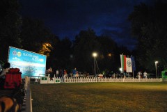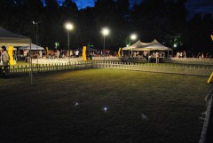 Ну а сами выставки начинались в 18.00 - это для комфорта людей и собак, когда падала жара и парк дарил нам прохладные струи озона. Правда заканчивались выставки около 4-х часов утра,и никому не было дела до тех, кто устал, испытывает дискомфорт от слепящих глаза фонарей, и даже тот факт, что петарды и фейерверки, взрывавшие ночное небо, могут испугать собак , также остался незамеченным. Вот так выглядели ринги на фоне ночного неба :